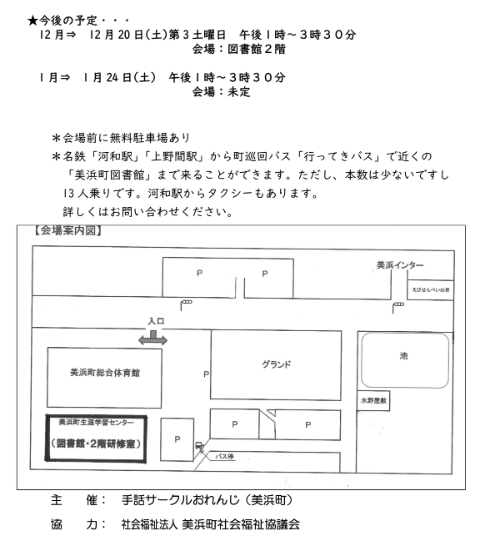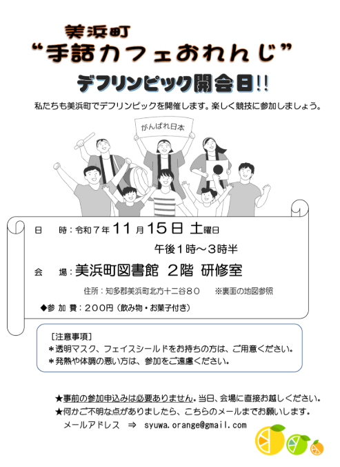 Chabs TOP Event / News(イベント情報・お知らせ) 手話カフェ 11月15日 開催(美浜町図書館2F) ALL Event News News 手話カフェ 11月15日 開催(美浜町図書館2F) 2025/10/29